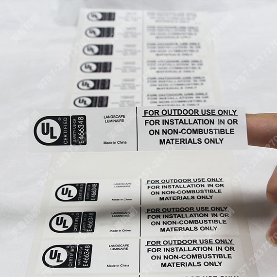 ul969耐高温标签 灯具照明UL警告贴纸 防水耐磨认证UL不干胶标贴