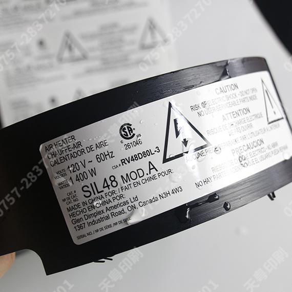 安规CSA标签  电力警示铭牌生产 ul969电控柜贴纸
