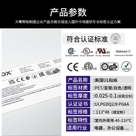 美标UL  (EAC,CE,GS认证)打印设备 可变二维码贴纸 符合UL969要求标签备