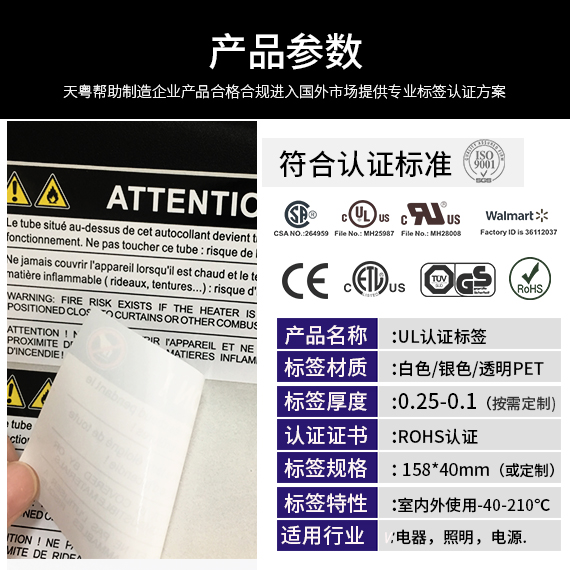 UL电机标签 UL1004标贴 有UL认证的印刷工厂 防水耐高温防酒精测试