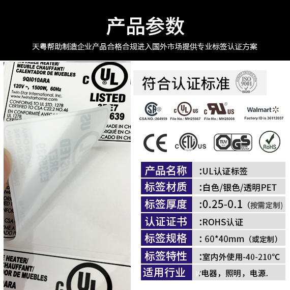 美规UL认证标签/UL94V0标准/UL969标准