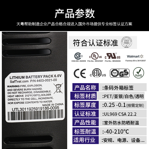 卷装用出口标签 北美电气产品ETL铭牌认证