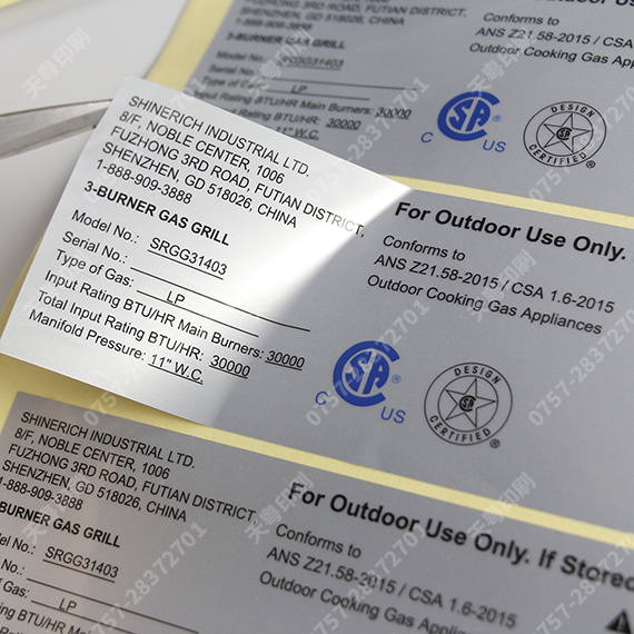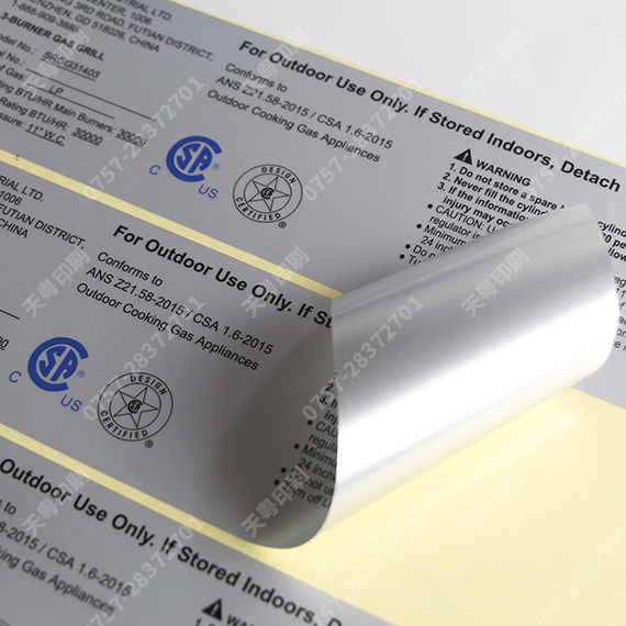 CSArohs标准-TY50A-150铭牌-高温标签生产厂家-液化气安全标签-pet亚银标签