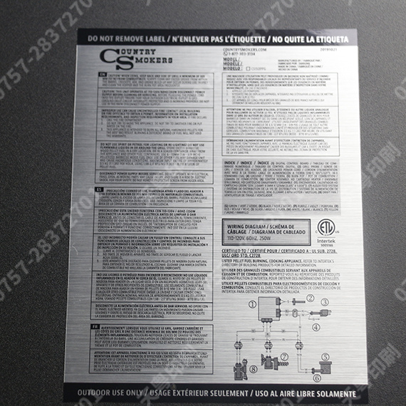 户外铭牌 耐晒防水银色拉丝银不干胶 设备标签符合rohs环保标签