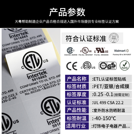 北美etl认证 UL1963标签样式 制冷设备铭牌 UL969认证标准