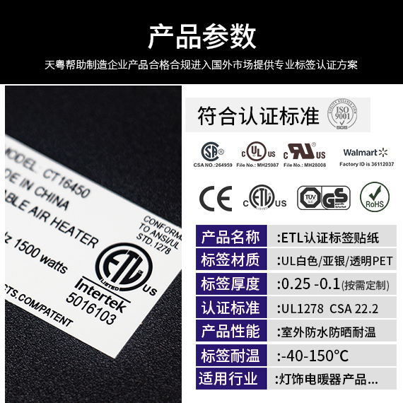 北美电气产品ETL铭牌认证 |