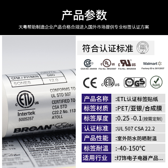 北美电气产品ETL铭牌认证 |