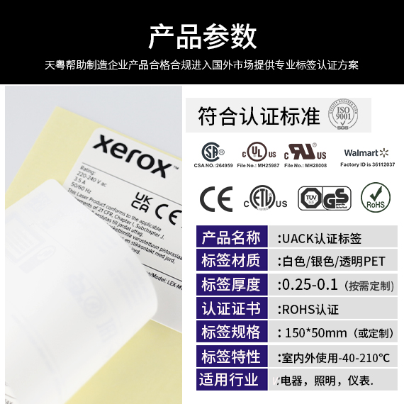卷装用出口标签 北美电气产品ETL铭牌认证
