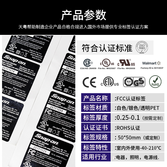 FCC认证标签要求 美国可变流水号贴纸 蓝牙音响设备标贴