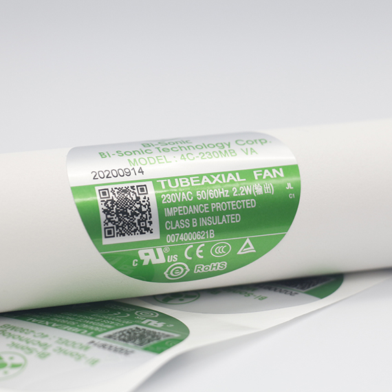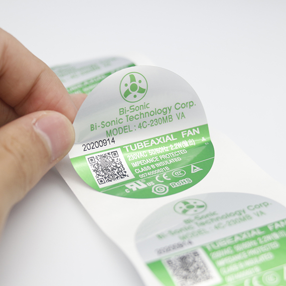 欧盟风扇CE铭牌 可变二维码贴 符合UL969亚银标贴
