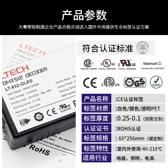 ce认证标签要求  打印设备UL969标签  白色PET(聚酯)标贴