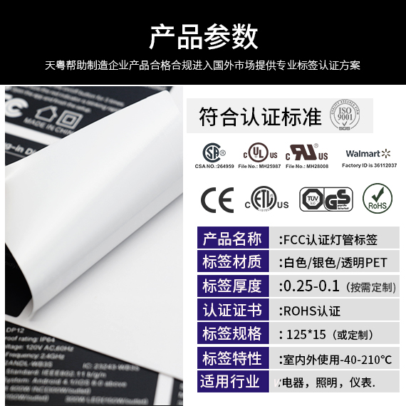 卷装用出口标签 北美电气产品ETL铭牌认证