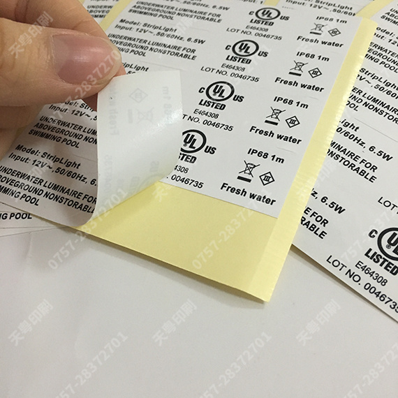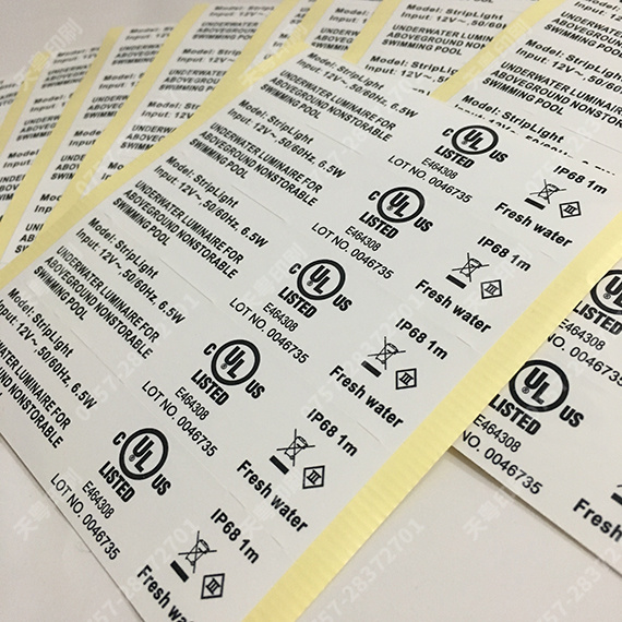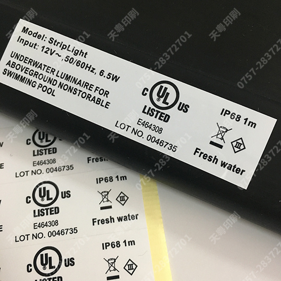 水下灯UL969标签 有UL PGAA认证的印刷厂商 防水耐高温防酒精测试灯UL969标签灯UL969标签