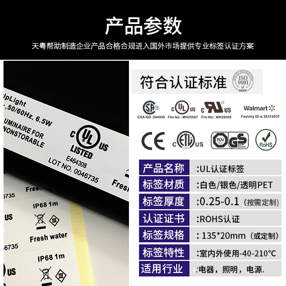 美规UL认证标签/UL94V0标准/UL969标准