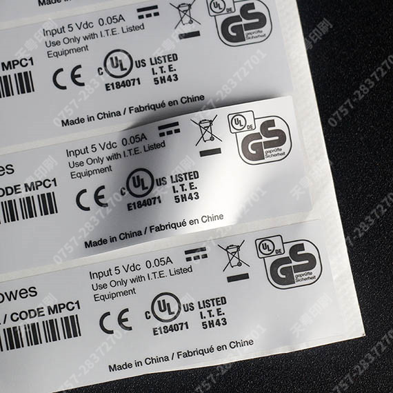 3M不干胶标签 符合RoHS环保认证UL耐温标签 3M亚银电源标签